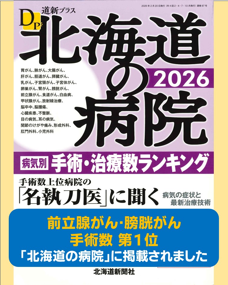 北海道新聞社発行の「北海道の病院 2026」に、当院が掲載されました✨今回の「手術・治療数ランキング」において、当院の泌尿器科部門は以下の実績を収めています。