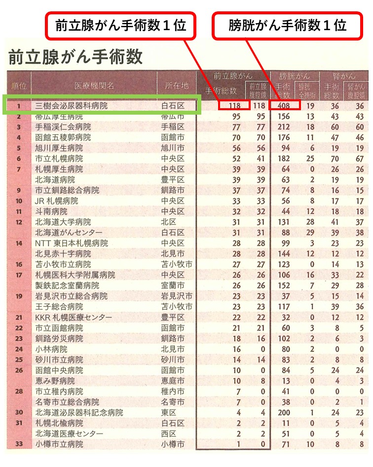 ✅ 前立腺がん手術数:北海道内 第1位(118例)✅ 膀胱がん手術数:北海道内 第1位(408例)